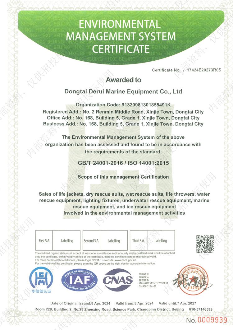 環(huán)境管理體系認(rèn)證證書